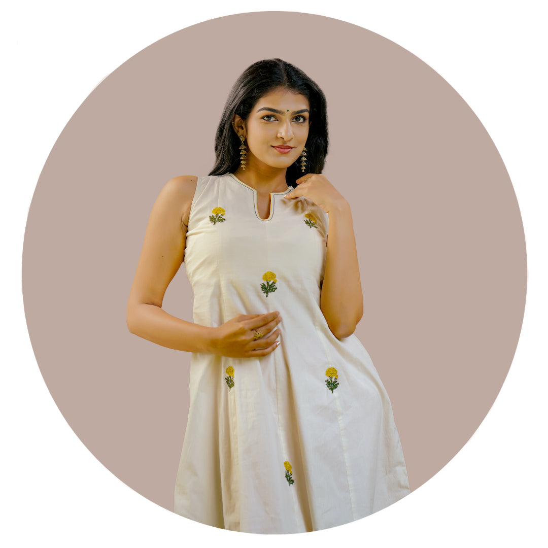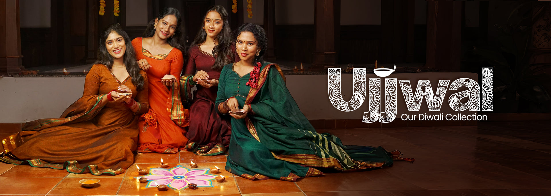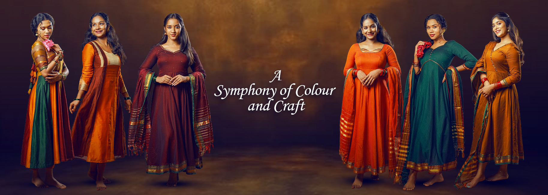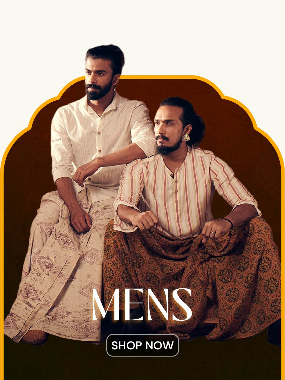 We offer a curated collection of handcrafted ethnic clothing for women, men, and children. Our garments celebrate Indian craftsmanship through traditional techniques like hand block printing, natural dyeing, and hand weaving—designed in a contemporary style.