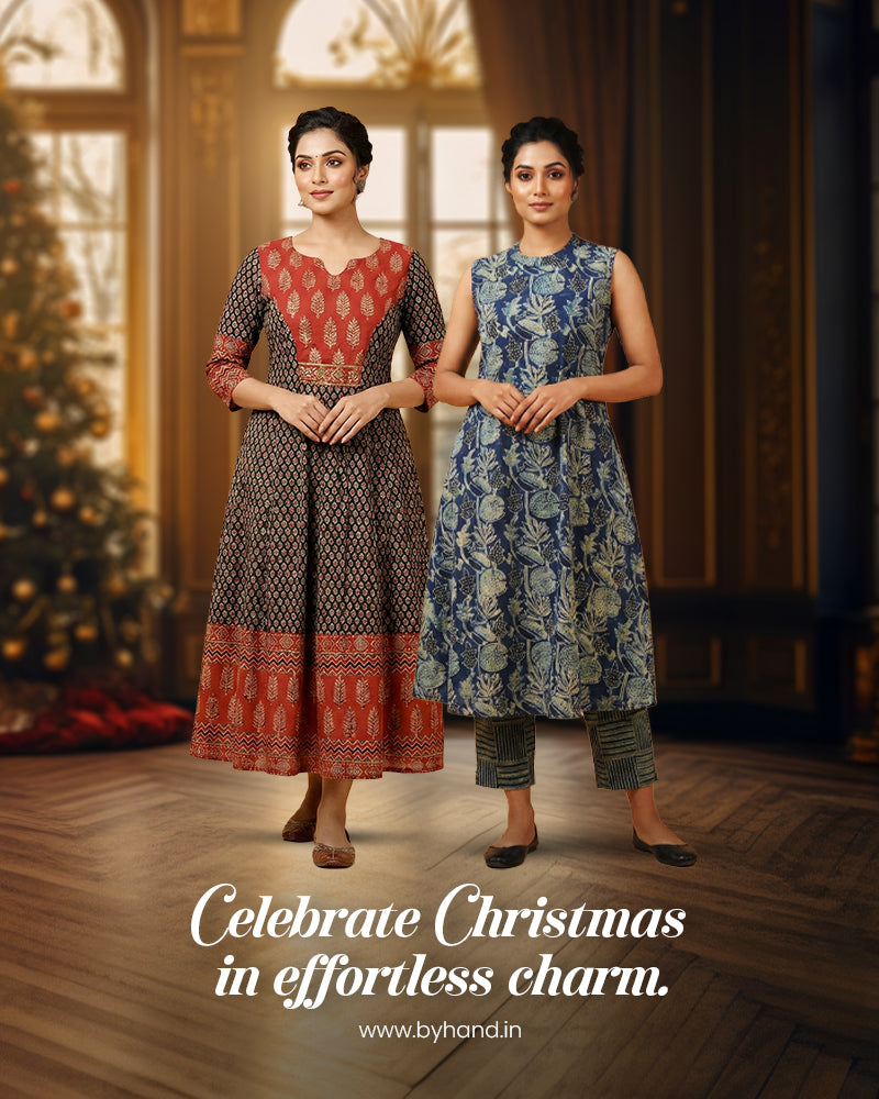 Byhand’s designs marry heritage craftsmanship with modern silhouettes. From sarees and kurtas to contemporary co-ords, each creation carries the elegance of the past while speaking the language of the present — for women, men, and children who seek authenticity, beauty, and meaning in what they wear.
