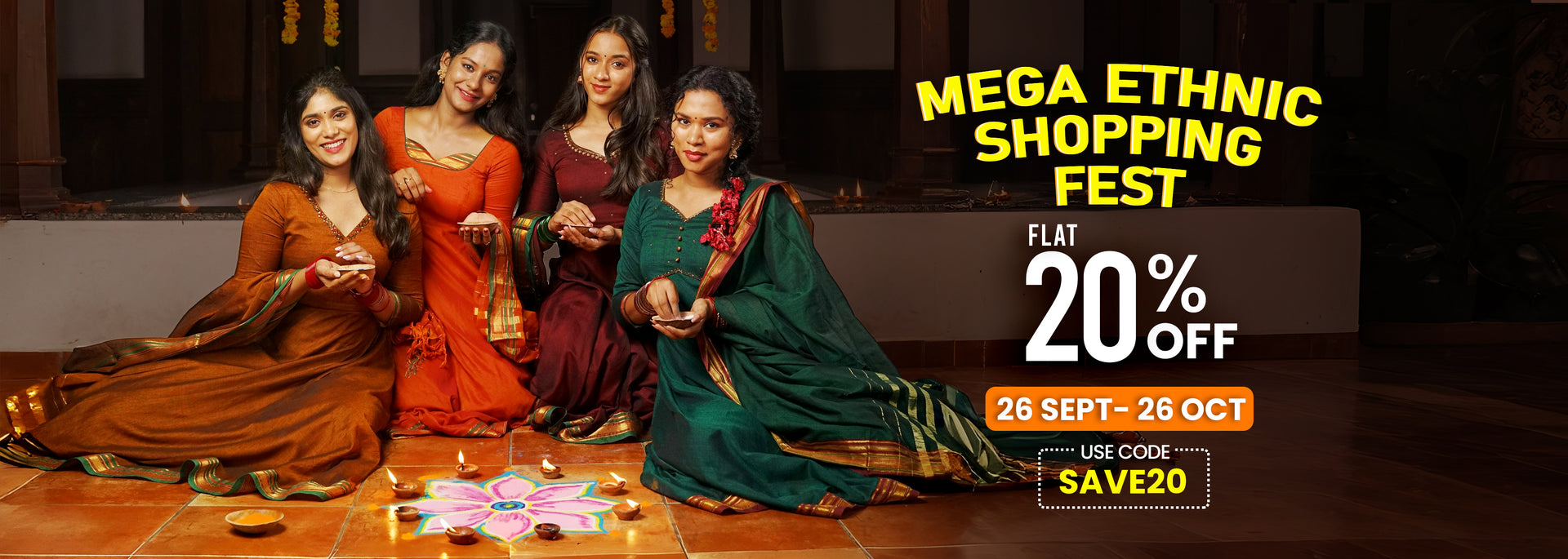 We offer a curated collection of handcrafted ethnic clothing for women, men, and children. Our garments celebrate Indian craftsmanship through traditional techniques like hand block printing, natural dyeing, and hand weaving—designed in a contemporary style.