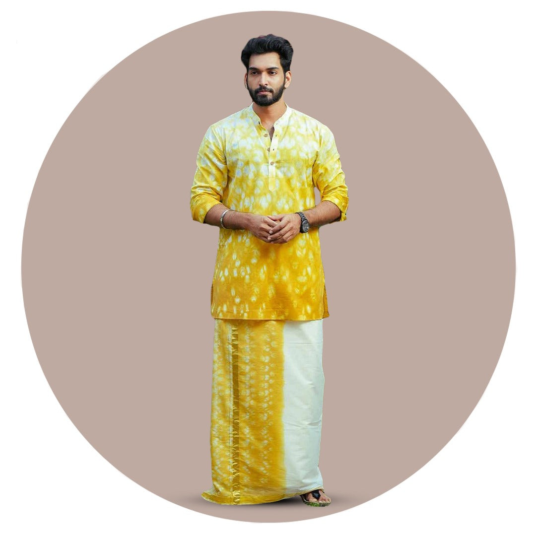 Offwhite Dhothi Theyyam Print 1 Inch Gloden Border