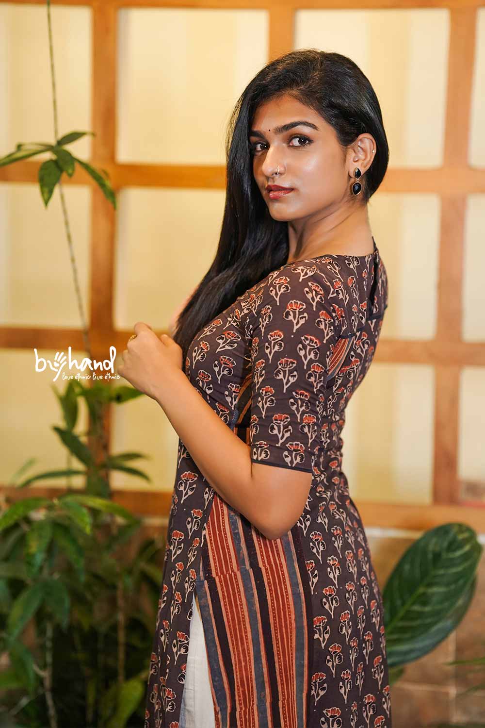 BROWN BASE AJRAKH FLORAL KURTI
