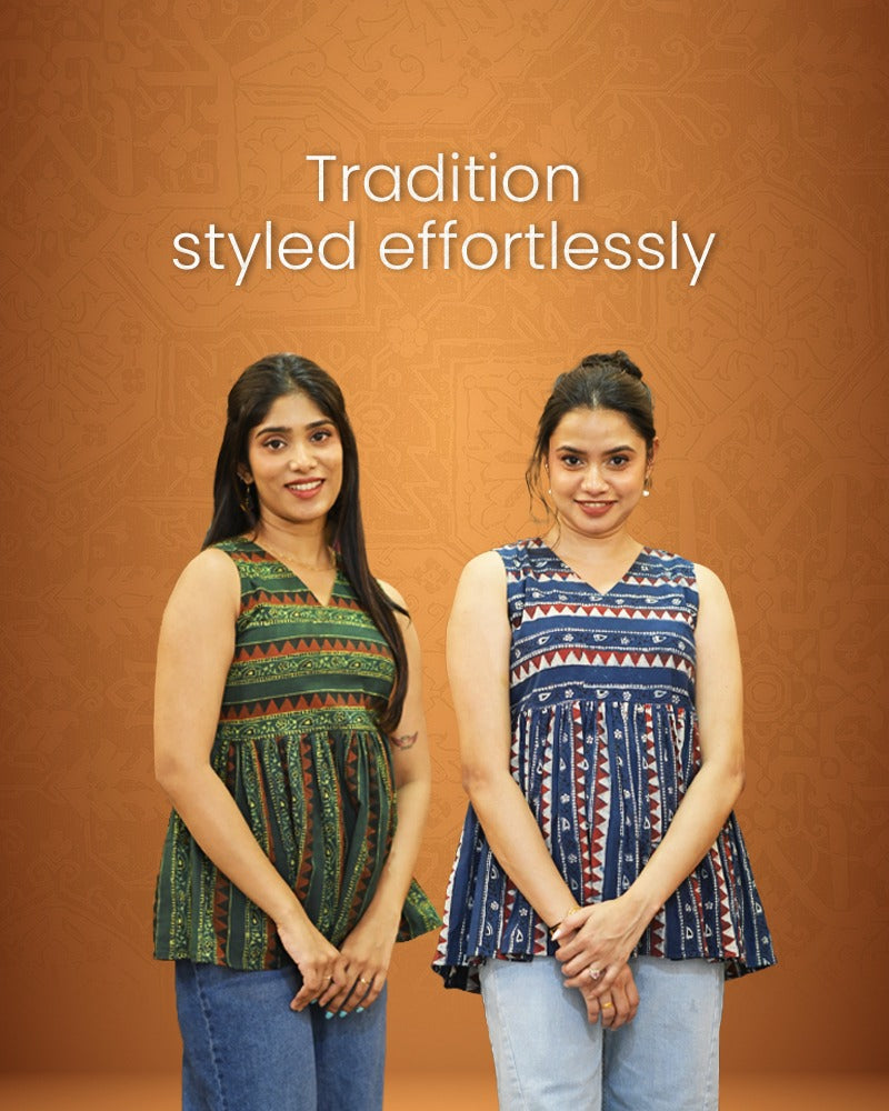 Indigo Halter Neck Short Kurti