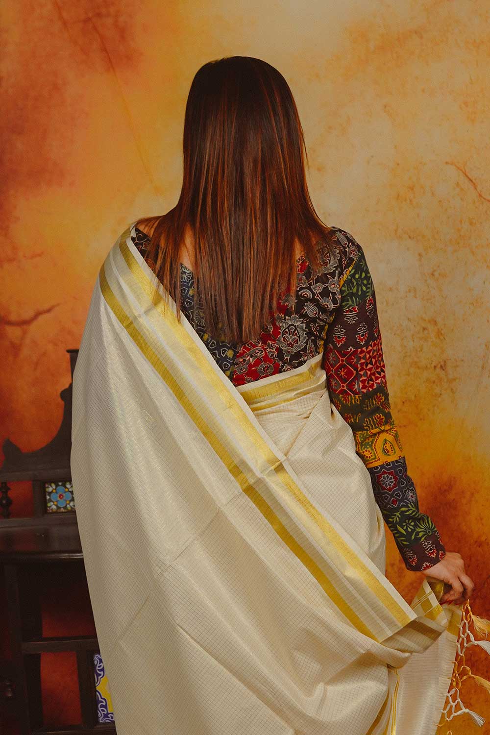 Ajrakh Printed Multi Patch Blouse with Full Sleeves