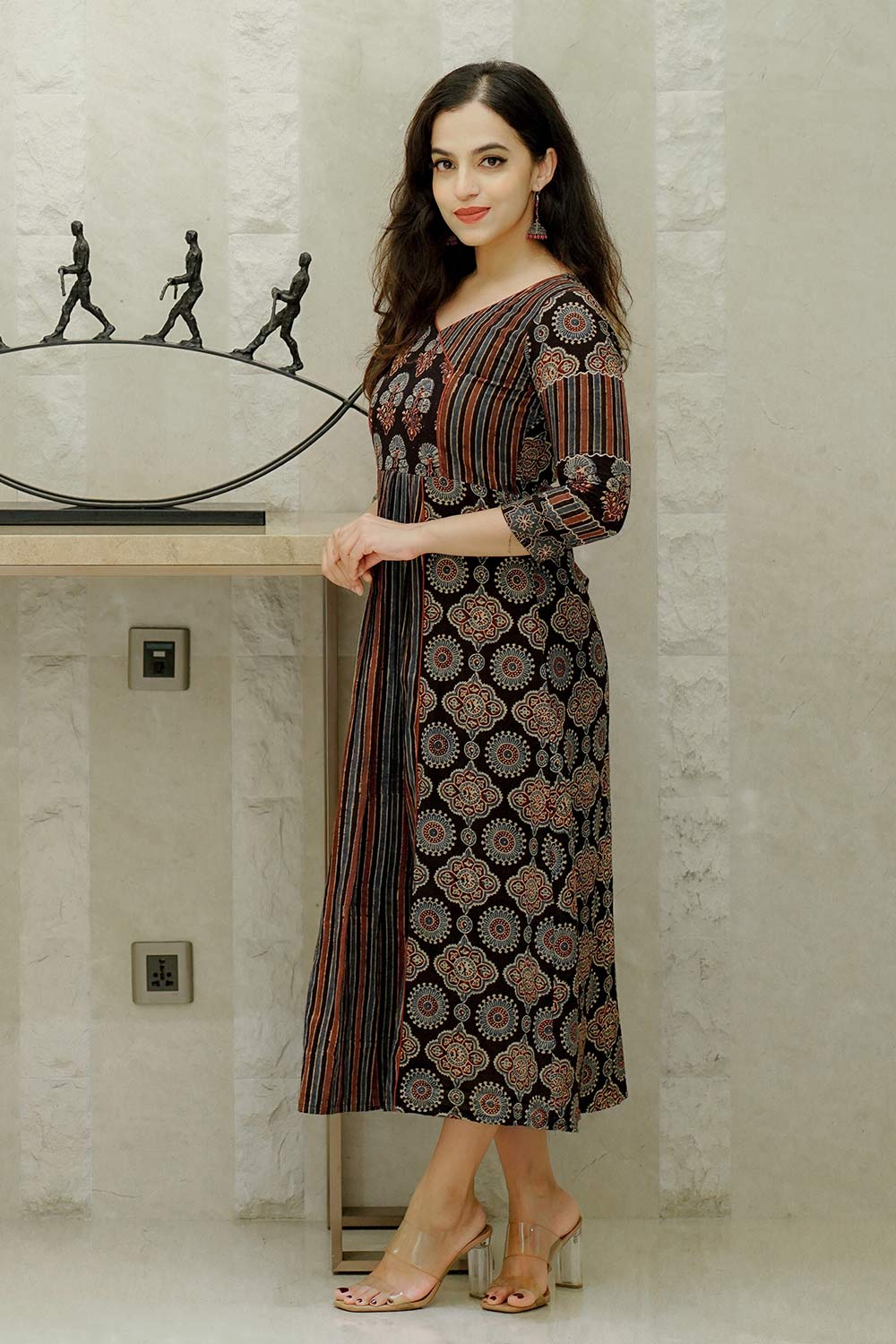 Black Ajrakh Cotton Angarkha A-Line Kurti