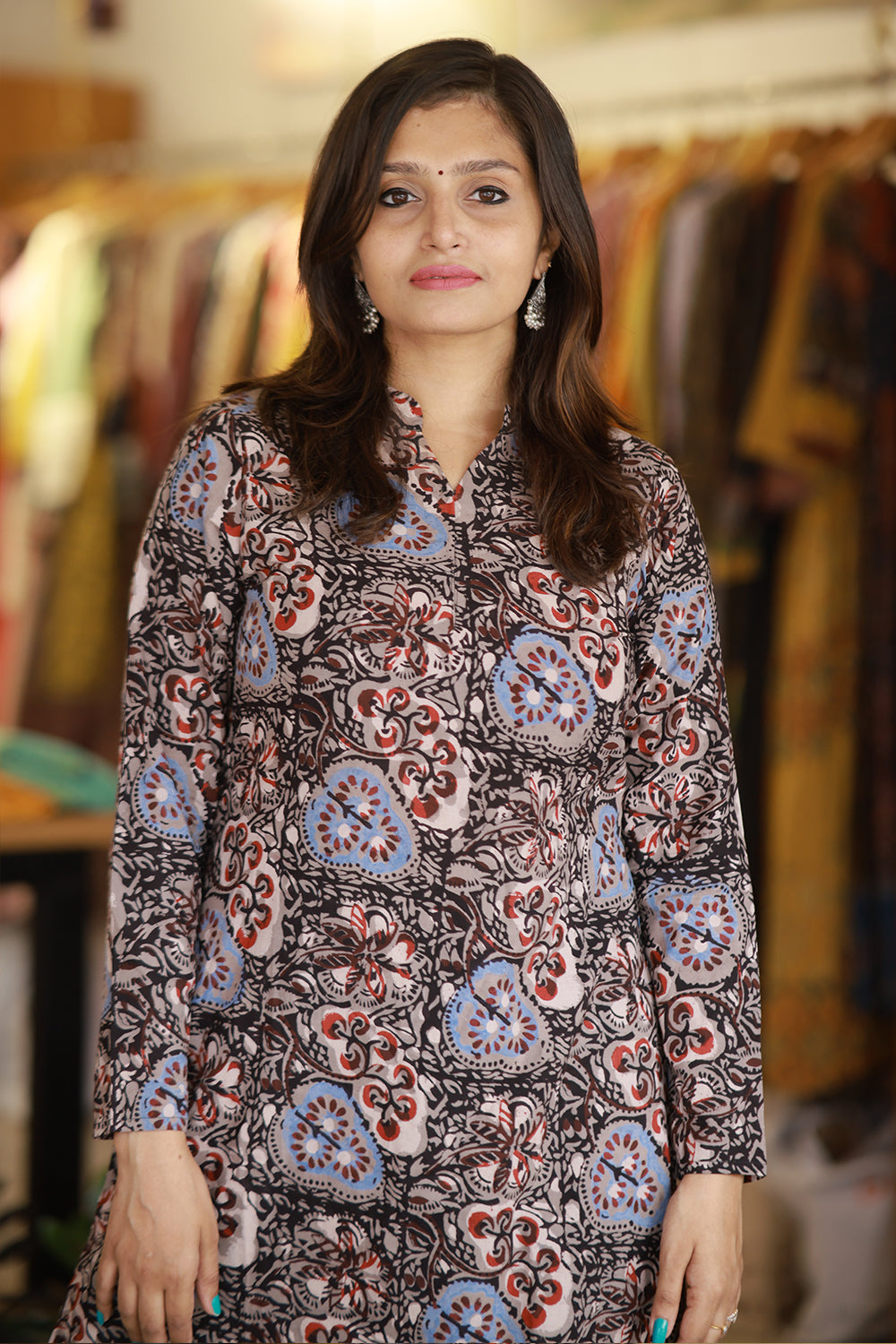 Black Kalamkari Printed Cotton Kurti with Straight Pants