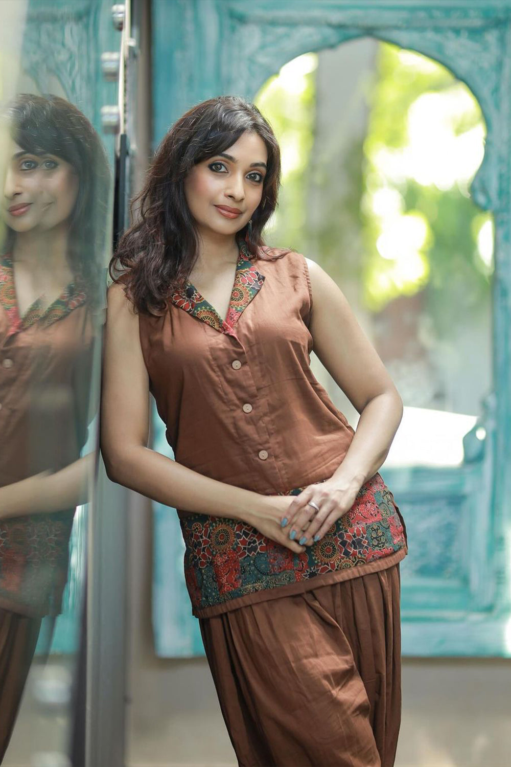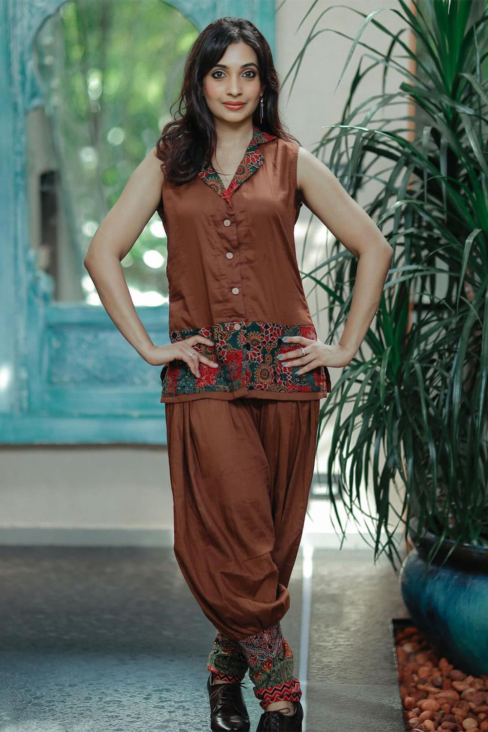 Brown Base Color Patch Work Co-ord set with lapel collar
