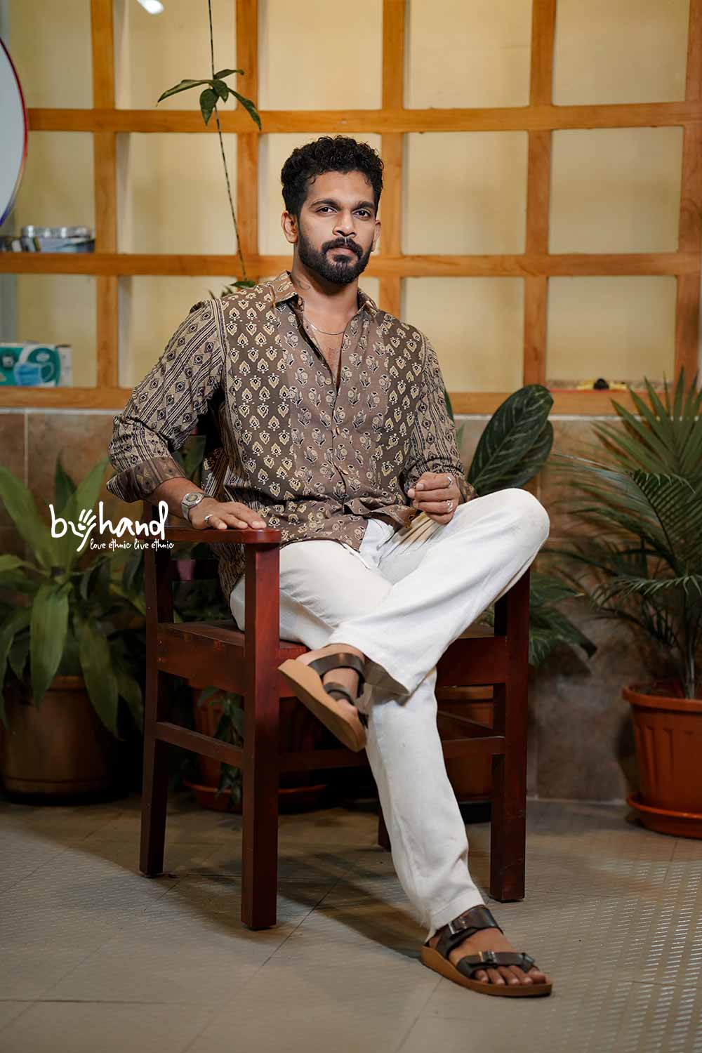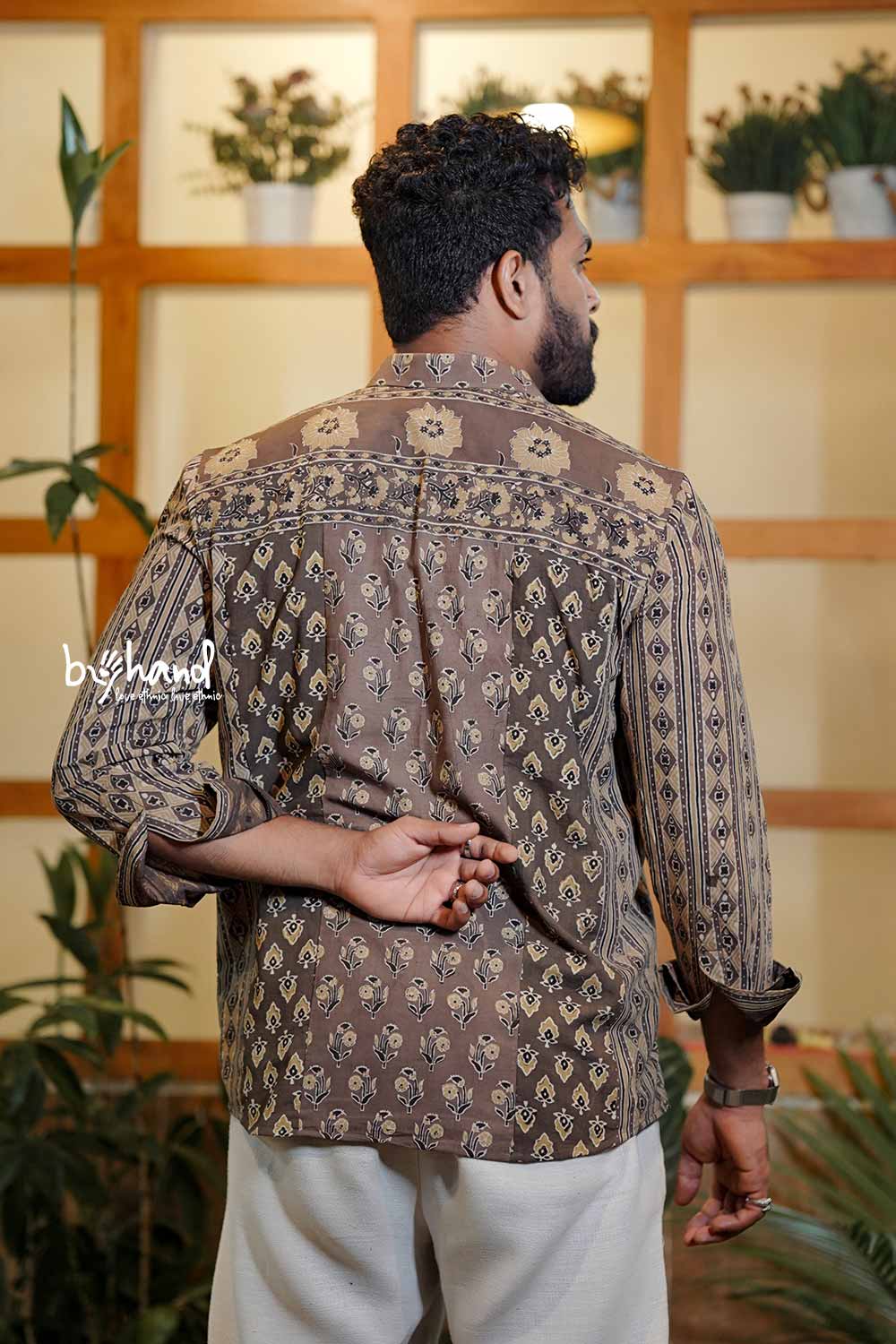 Brown Base Ajrakh Patch Shirt