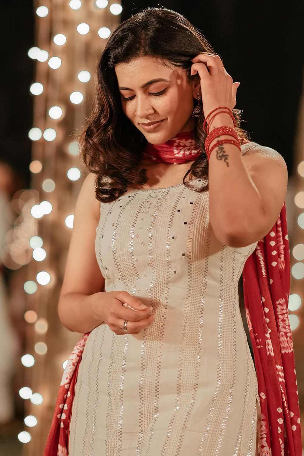 Off-White Sleeveless Kurti & Palazzo with Zari and Embroidery