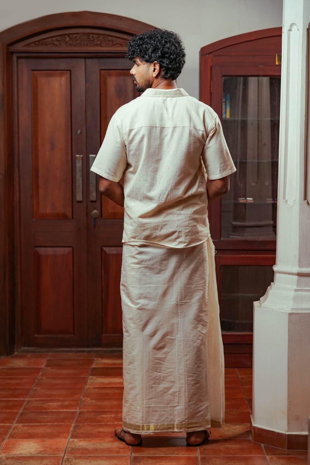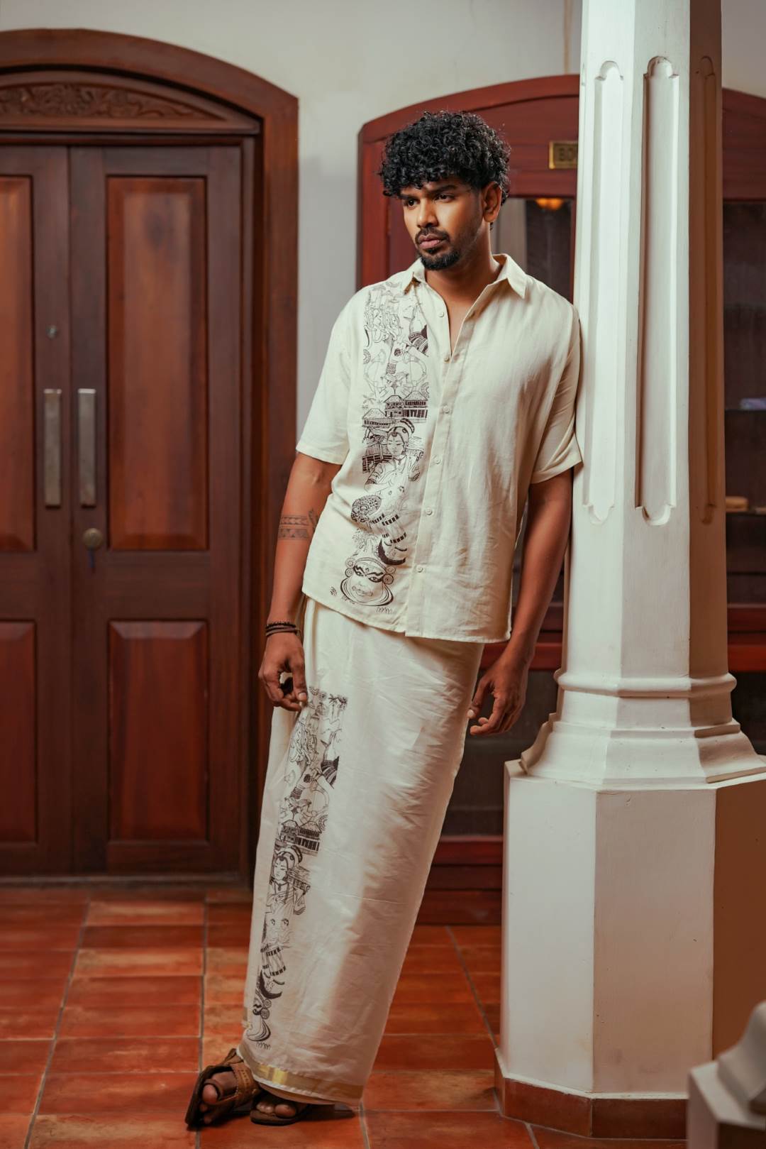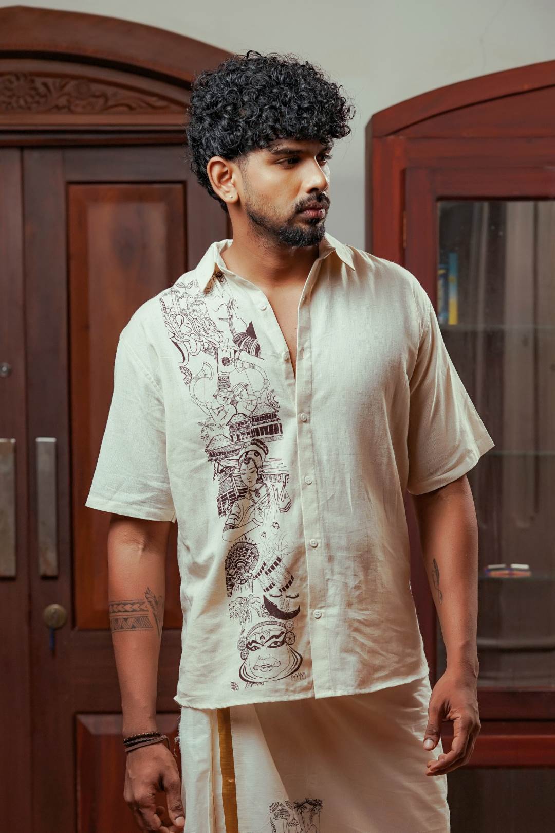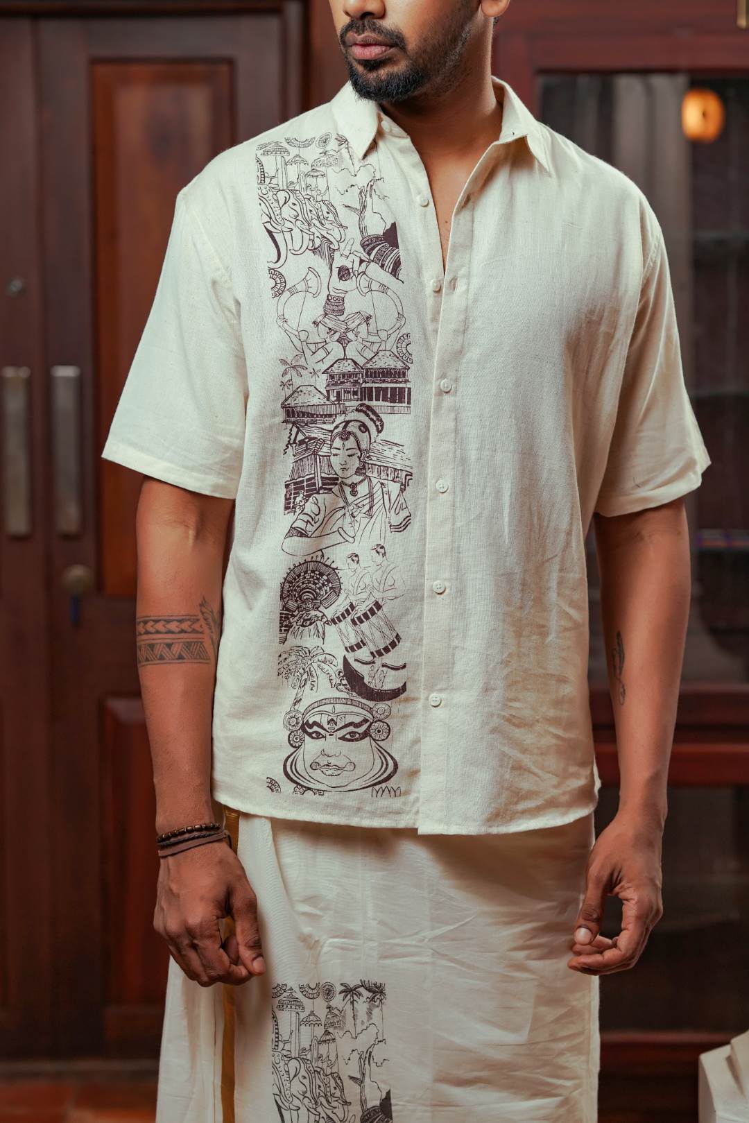 Offwhite Half Sleeve Shirt with Kerala Theme Print
