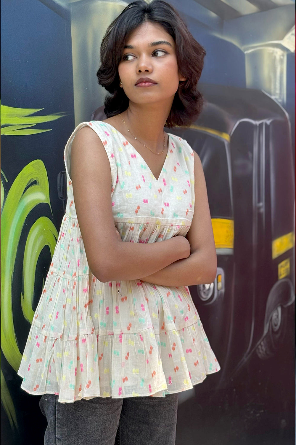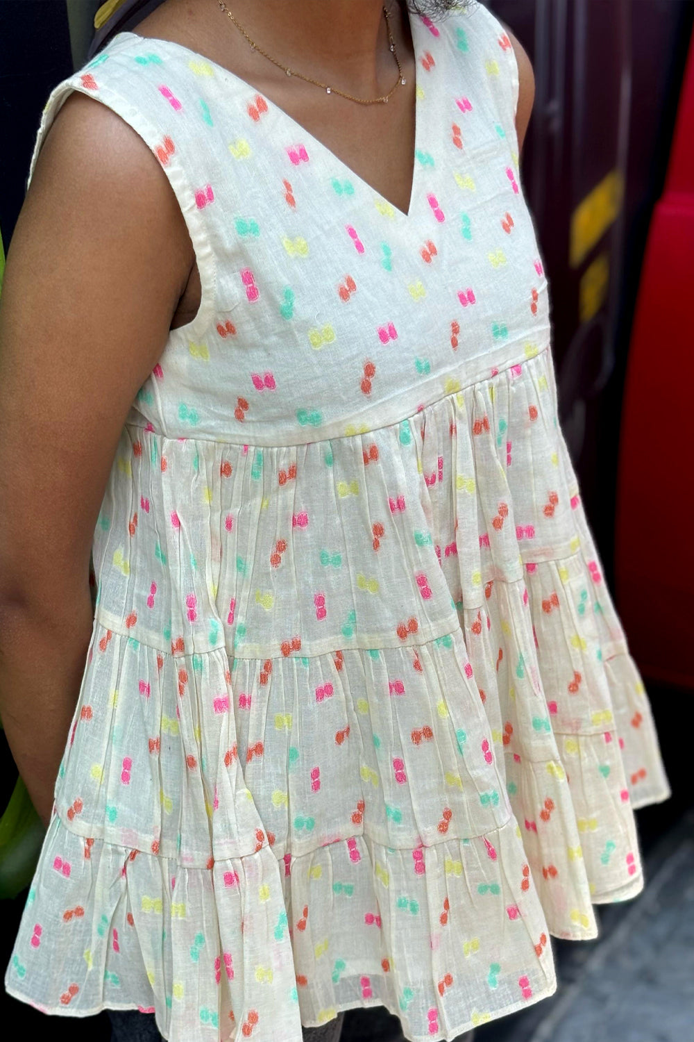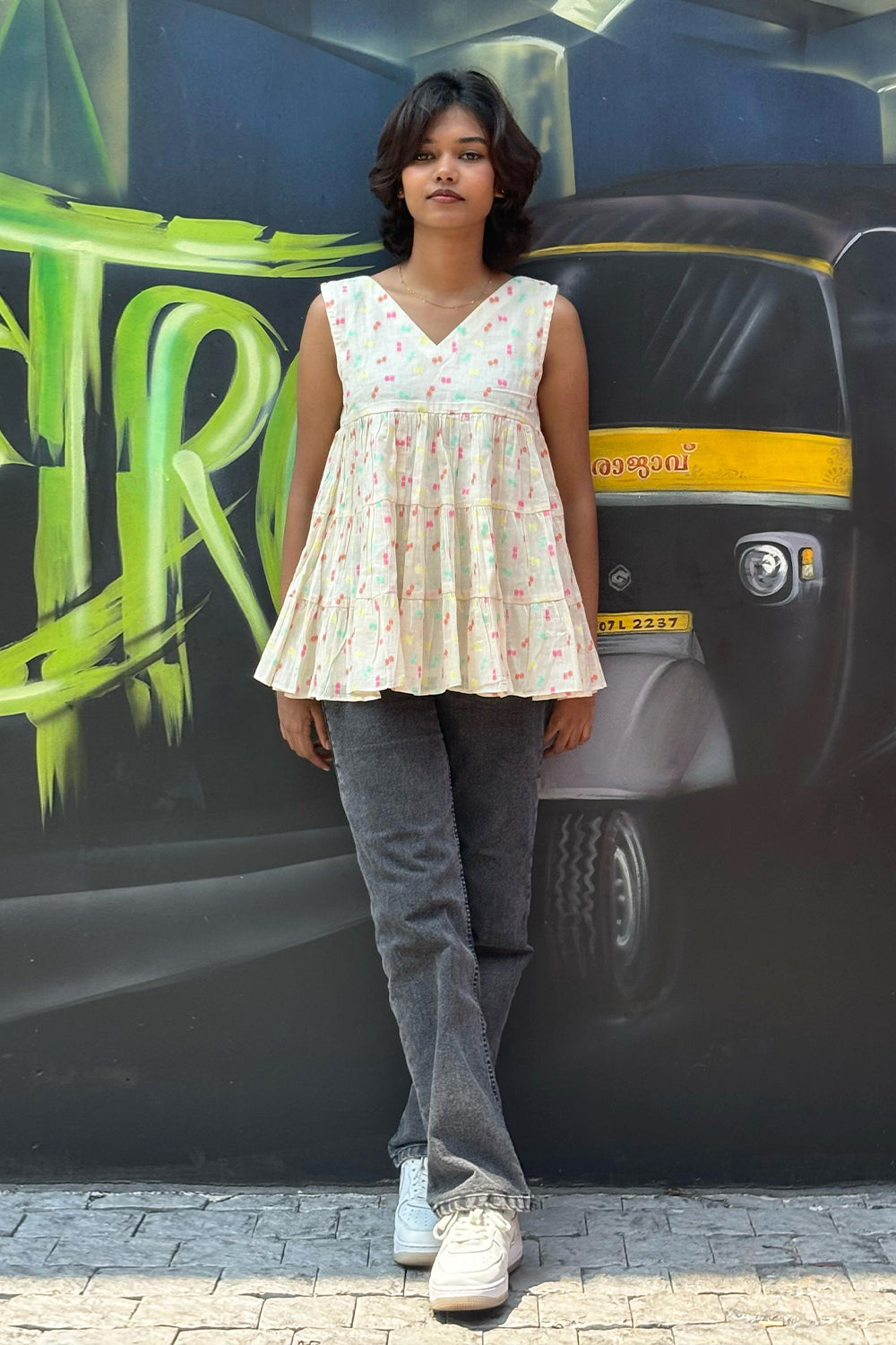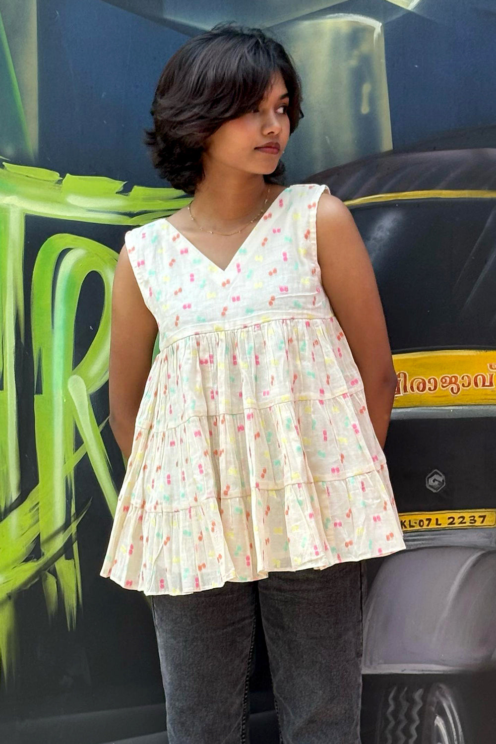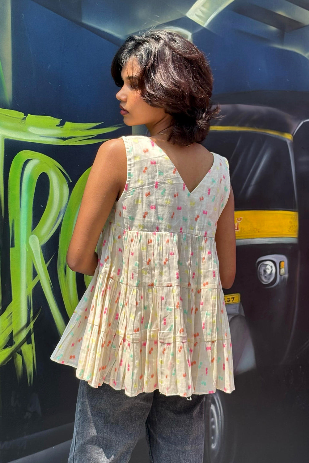 Offwhite Multicolour Butta Tiered Sleeveless Top