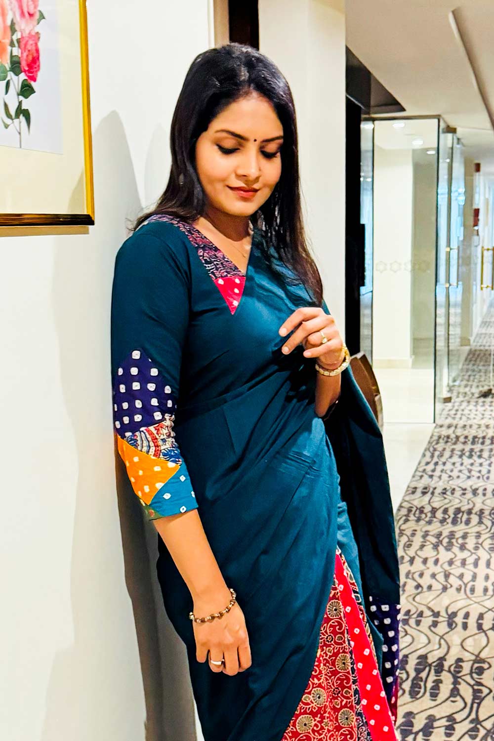 As this product consturction include patch work desin, printed motifs on patches may vary but the colour combination and hence the look will be remain the same