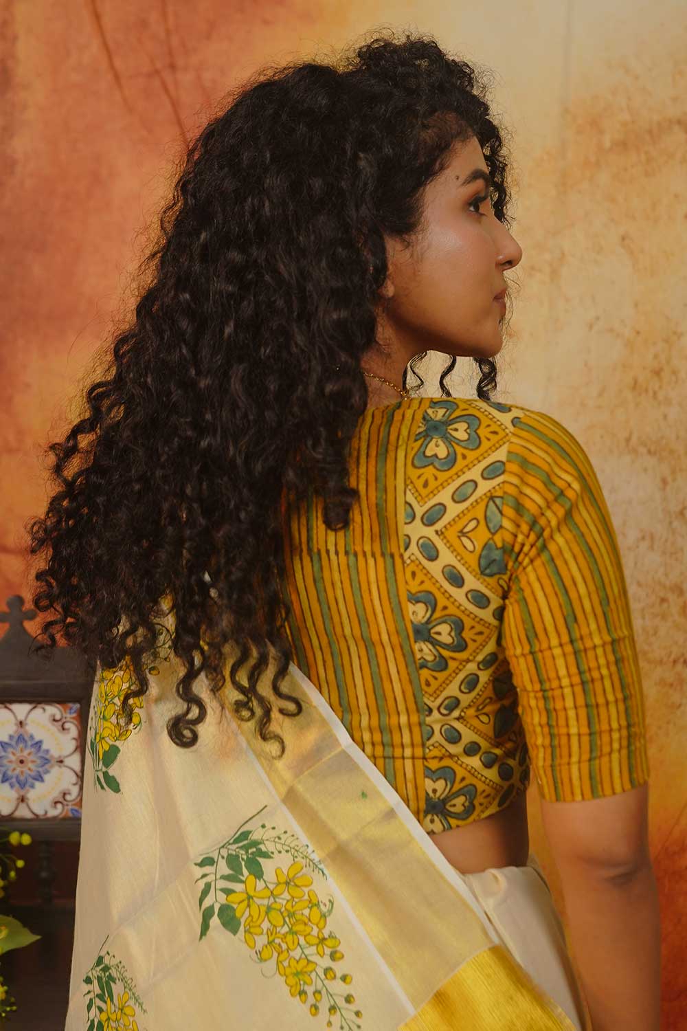 Yellow Ajrakh Stripes Blouse