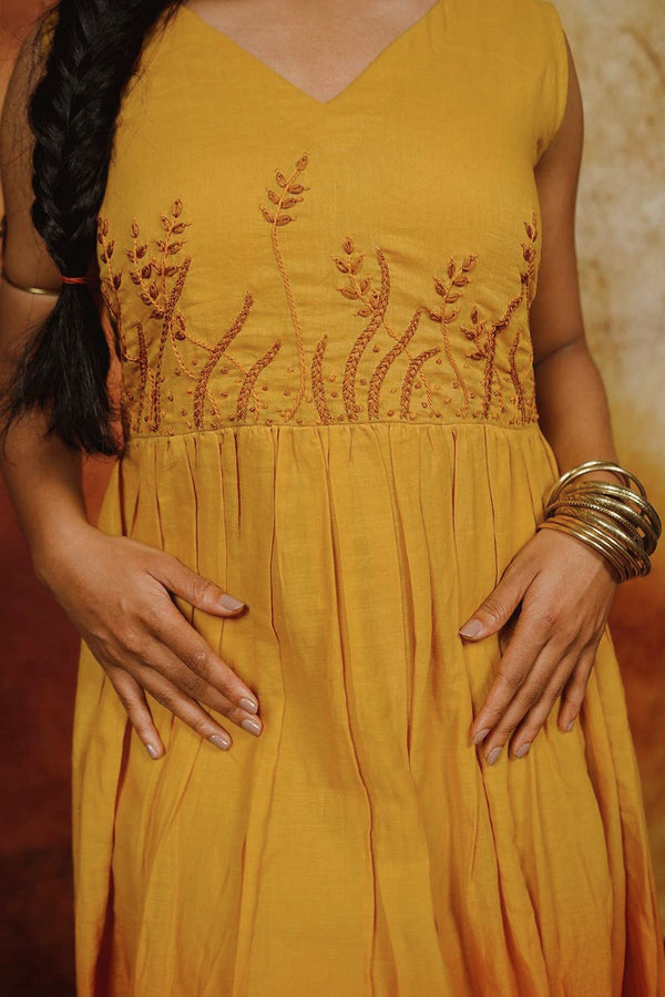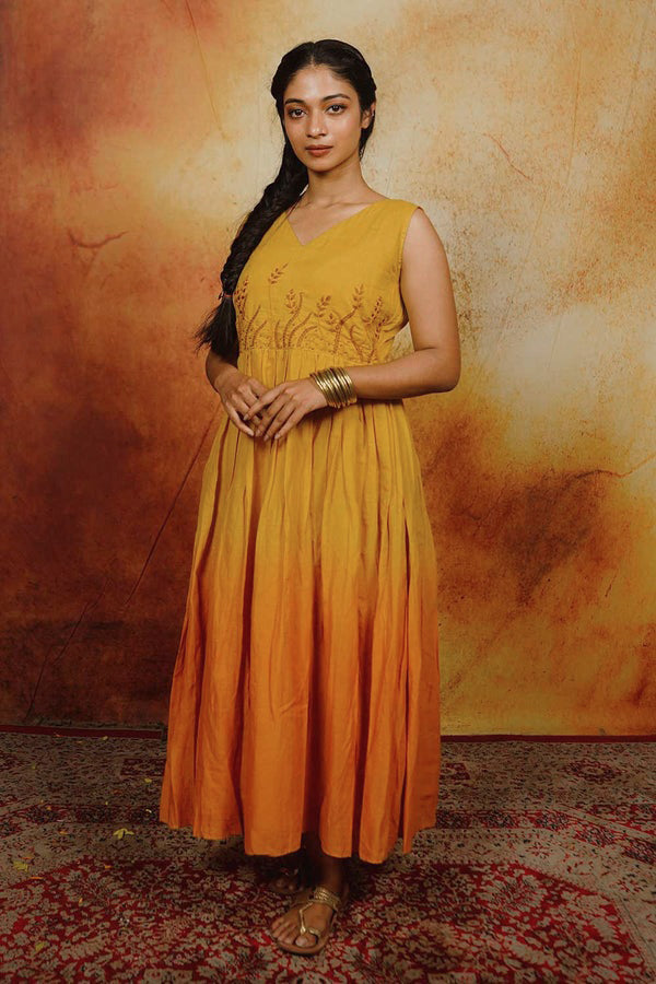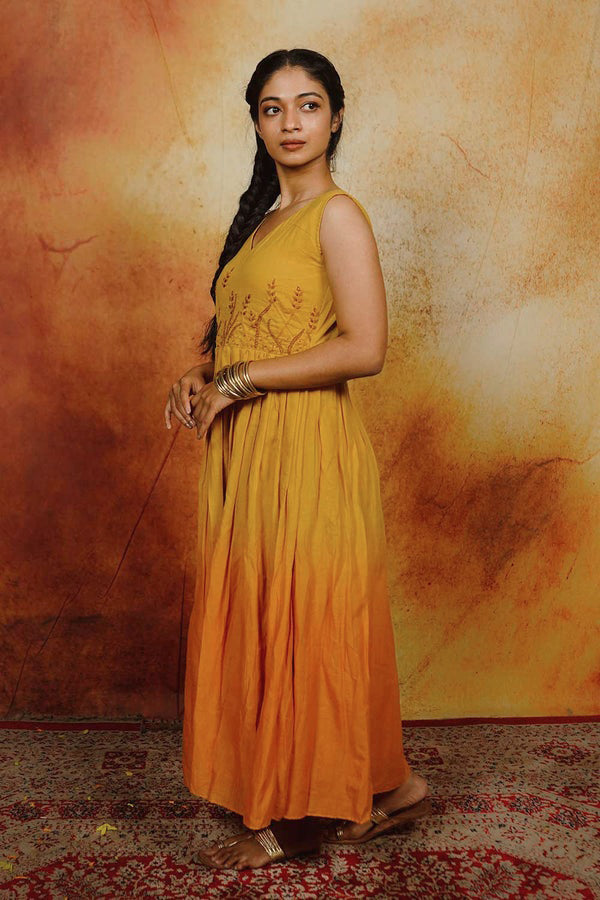 Yellow Ombre Dress with Embroidery